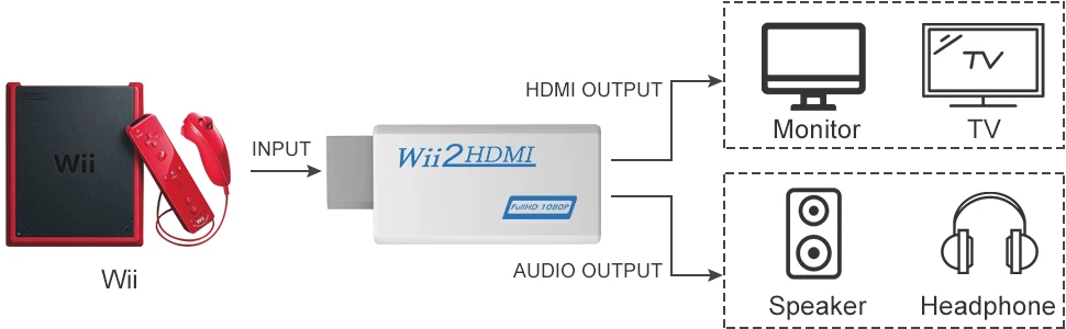 WII To HDMI Adapter Full HD 1080P WII To HDMI Wii 2 HDTV Converter Wii To HDMI Adapter 3.5mm Audio for HDTV Monitor Display PC